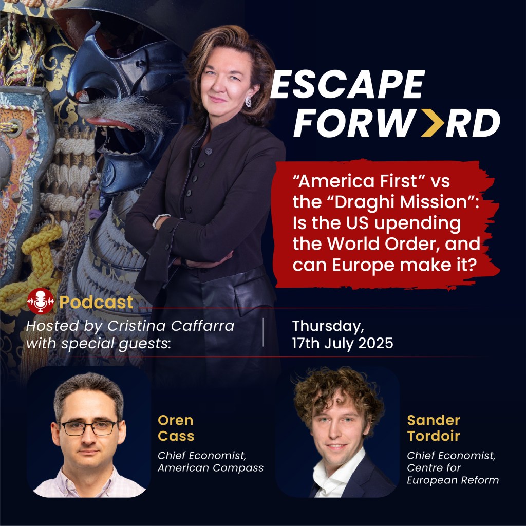 In this NEW PODCAST Cristina Caffarra practices escaping forward from (just) antitrust, because everything connects. This episode brings together an American Conservative view of Europe and what “America First” means behind the current tariff war (Oren Cass) and a European diagnosis of the problem and what we should do (Sander Tordoir). Brutal and clear. We are not just fighting a trade war.